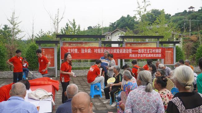 为响应习近平总书记对于新时代推动西部大开发的号召,引导和帮助广大青年“立大志、长大才、担大任,让奋斗青春绽放西部大地”。6月29日-7月11日,学院廌鸣暑期社会实践团先后前往四川宜宾和重庆北碚开展法治宣传教育社会实践活动。活动共形成调研记录200余份,开展观成就、访民生、立村规等5大类别10余项活动,受到重庆日报、缙享北碚、北碚融媒体等多家媒体报道,活动图片被选为北碚融媒体封面新闻。