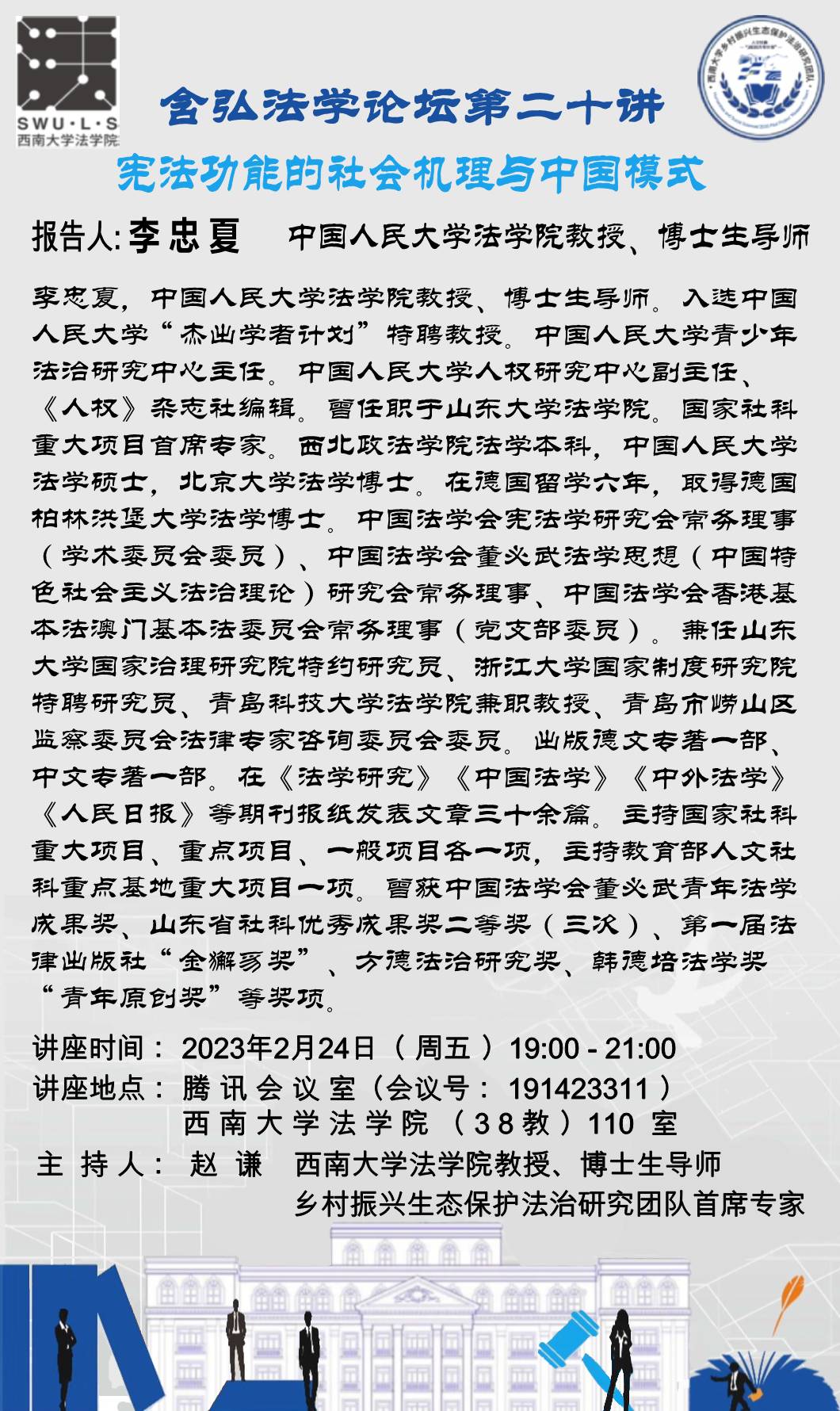 西南大学人文社科“2035先导计划”前沿讲坛(法学第9场)暨含弘法学论坛第二十讲
