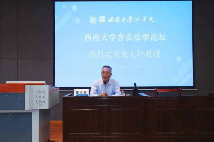 5月10日,学院举办含弘法学论坛第41讲。西南政法大学二级教授、博士生导师龙大轩教授以“法律与文化关系论”为题作主题讲座。活动由学院叶金育院长主持,学院数十位老师与百余名研究生、本科生参加了本次讲座。