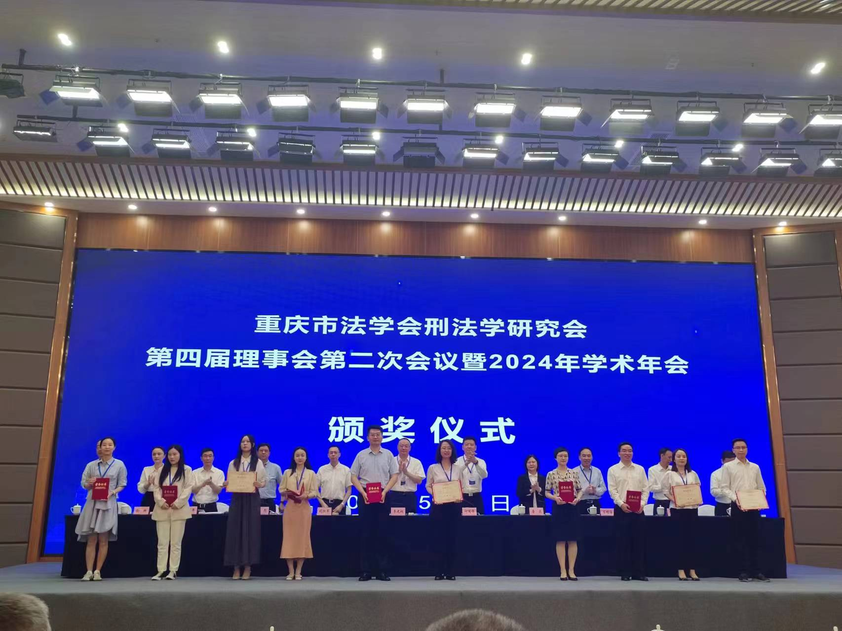 2024年5月31日,由重庆市法学会刑法学研究会主办,重庆市大足区人民检察院承办的重庆市法学会刑法学研究会第四届理事会第二次会议暨2024年学术年会在重庆市大足区顺利召开。本次学术年会的主题为“未成年人的刑事司法保护”,共征集到投稿论文128篇。经专家评审,共评出51篇优秀论文,其中一等奖5篇,二等奖10篇,三等奖16篇,优秀奖20篇。9999js金沙老品牌2022级硕士研究生陈金风同学独立撰写的《“当众型”网络猥亵儿童犯罪的司法认定》一文在本次学术年会中荣获二等奖。