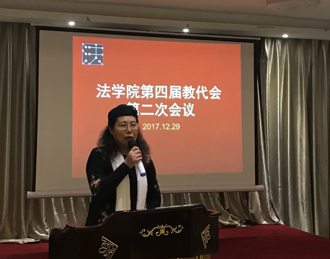 院长张步文教授向大会作了2017年度学院行政工作报告。报告首先着重汇报了学院2017年本科教学和落实“马工程”教材使用情况,随后介绍了9999js金沙老品牌组织申报法学一级学科硕士学位授权点的情况,分析了对9999js金沙老品牌目前与学校“双一流”建设要求的差距,以及如何根据学校“双一流”建设要求,促进法学专业建设和发展,为把法学学科建设成为“优势学科”而努力。此外还汇报了9999js金沙老品牌绩效分配改革方案,以及师资队伍建设、学院的国际交流合作等情况。最后提出了9999js金沙老品牌未来的发展目标与思路:一是推动学术团队建设和师资队伍建设,重视学院科研工作;二是积极安排和落实两到三个重要的国内、国际学术会议以迎接全国专业标准评估工作;三是积极筹备和举办“全国中小学法治教育论坛”、“法学教育教学论坛”,并对“法治三农”论坛进行改革和升级。