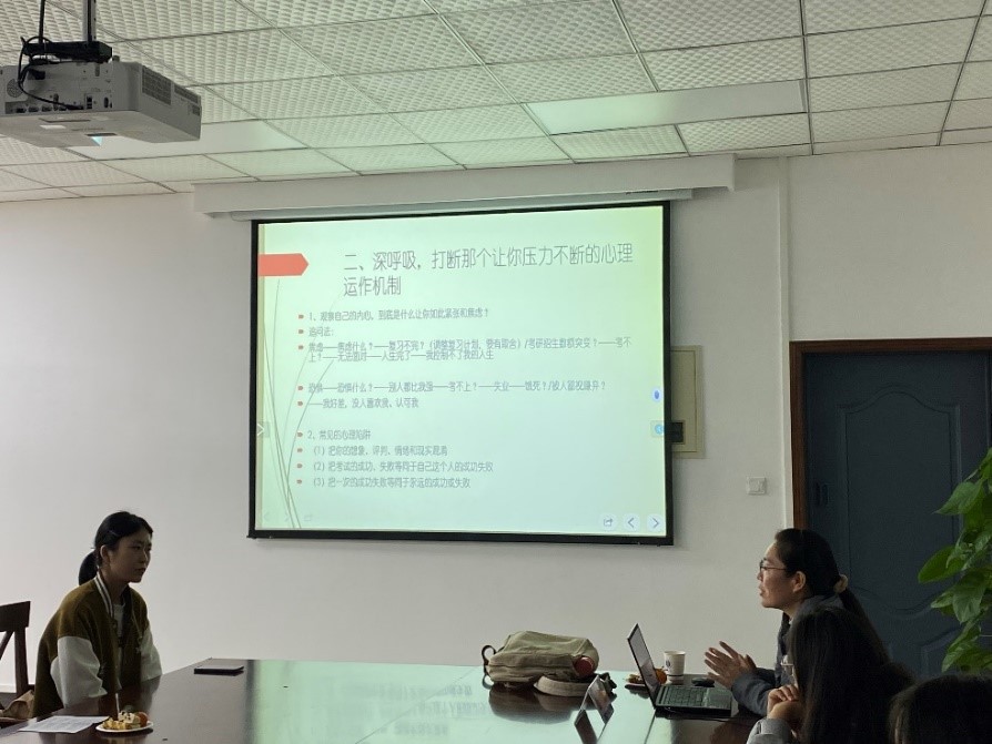 为帮助同学们积极、科学与有效备考,切实增强学生的心理纾解能力与素质,着力提升学生备考、学习的高效性,11月24日下午,学院成功举办“明辨廌行”班主任加油站第三期活动。活动主题为“考前心理压力及应对策略”,活动由2020级本科行政一班班主任杨柳老师主讲。
