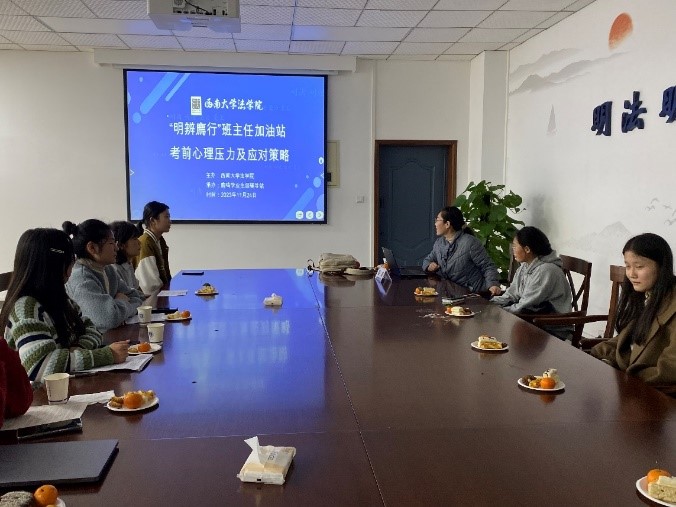 这次活动为即将面临期末考、研考的同学提供方法论上的指导,有助于帮助学院同学们在面临心理压力下稳住心态,学会根据实际情况进行自我纾解,对自身的行动、目标做更清晰的调整策略。今后学院也会持续开展“明辨廌行”班主任加油站活动,关注学院同学需求,为学院同学成长成才助力!