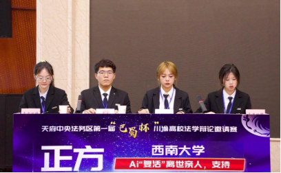 半决赛中,双方就“AI‘复活’离世亲人,支持还是不支持”展开辩论。正方以AI复活满足了近亲属的情感需求展开论证,而反方则提出AI复活亲人不具有国家层面的需求性。双方激烈角逐,最终西南大学队以总分2分之差惜败,最终获得季军。