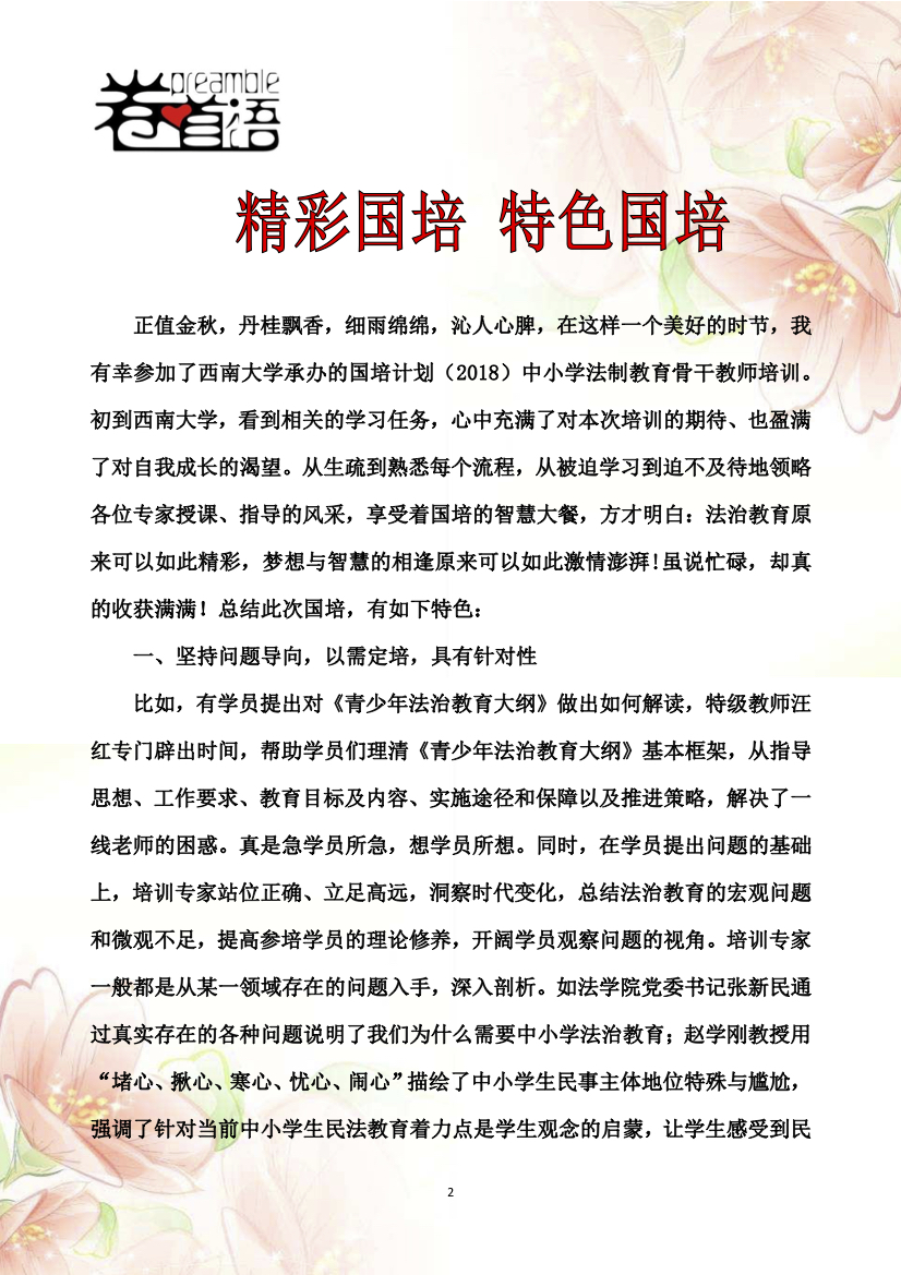 “国培计划(2018)” ——法治教育骨干教师培训项目简报9月第2期