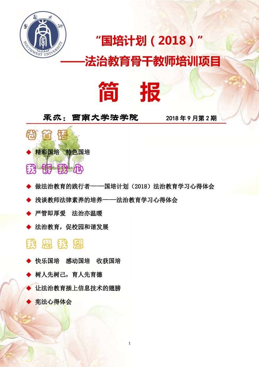 “国培计划(2018)” ——法治教育骨干教师培训项目简报9月第1期