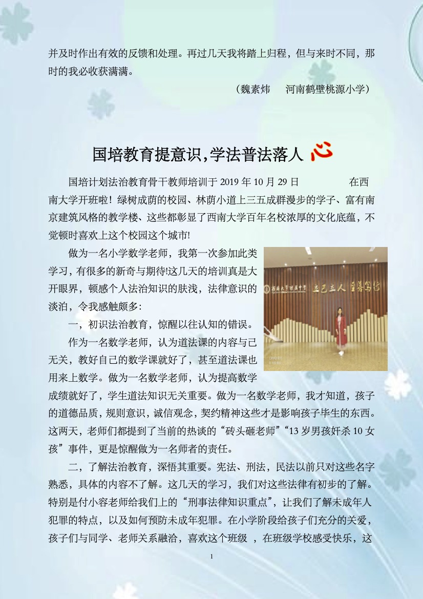 国培计划(2019)——法治教育骨干教师项目简报10月第2期