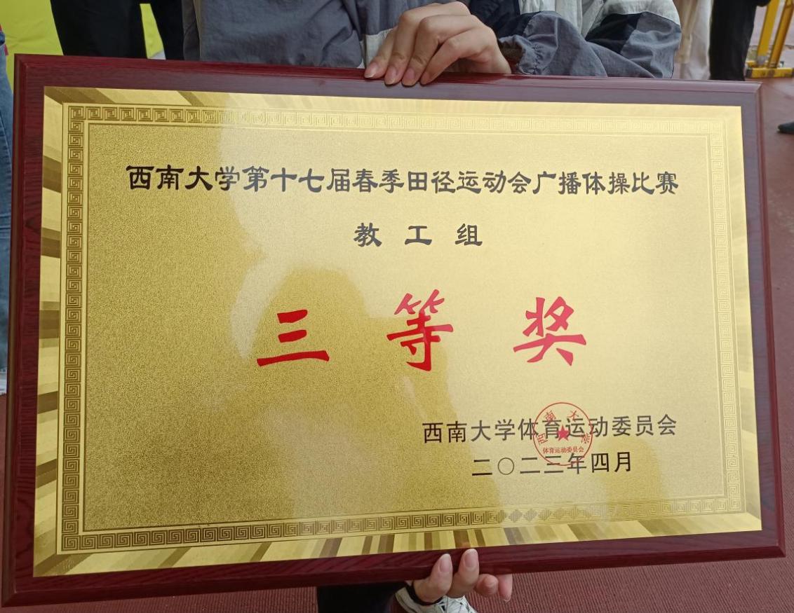 9999js金沙老品牌教职工也响应学校号召,积极参加教职工组田径单项、团体趣味运动和广播体操比赛。学院梅芡菱老师取得了女子个人跳远第四名的成绩,学院获广播体操比赛三等奖。