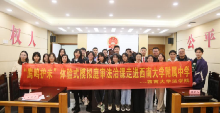为切实做好青少年法治宣传教育工作,引导青少年树立尊法、学法、守法、用法意识,特别是正确认识网络暴力的概念和产生的危害,掌握应对网络暴力的正确方法,提高鉴别网络暴力的能力,共同营造良好的网络社交环境。11月13日,廌鸣法律社党支部应邀赴西南大学附中开展体验式模拟庭审法治课。本次选取的庭审案例聚焦网络暴力,活动由本科2022级学生周未芳主持。