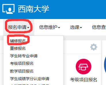 5、或者点击“报名申请”下面的辅修报名也可以进入
